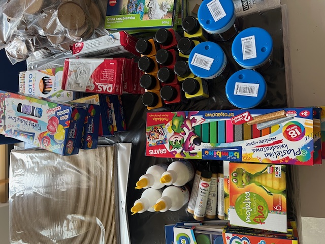 Na zajęcia „Mały artysta” zakupiono materiały plastyczne, takie jak farby, kredki, bloki rysunkowe, plastelina oraz inne akcesoria do kreatywnych prac plastycznych, które umożliwiają dzieciom rozwijanie zdolności manualnych i wyrażanie siebie poprzez sztukę.