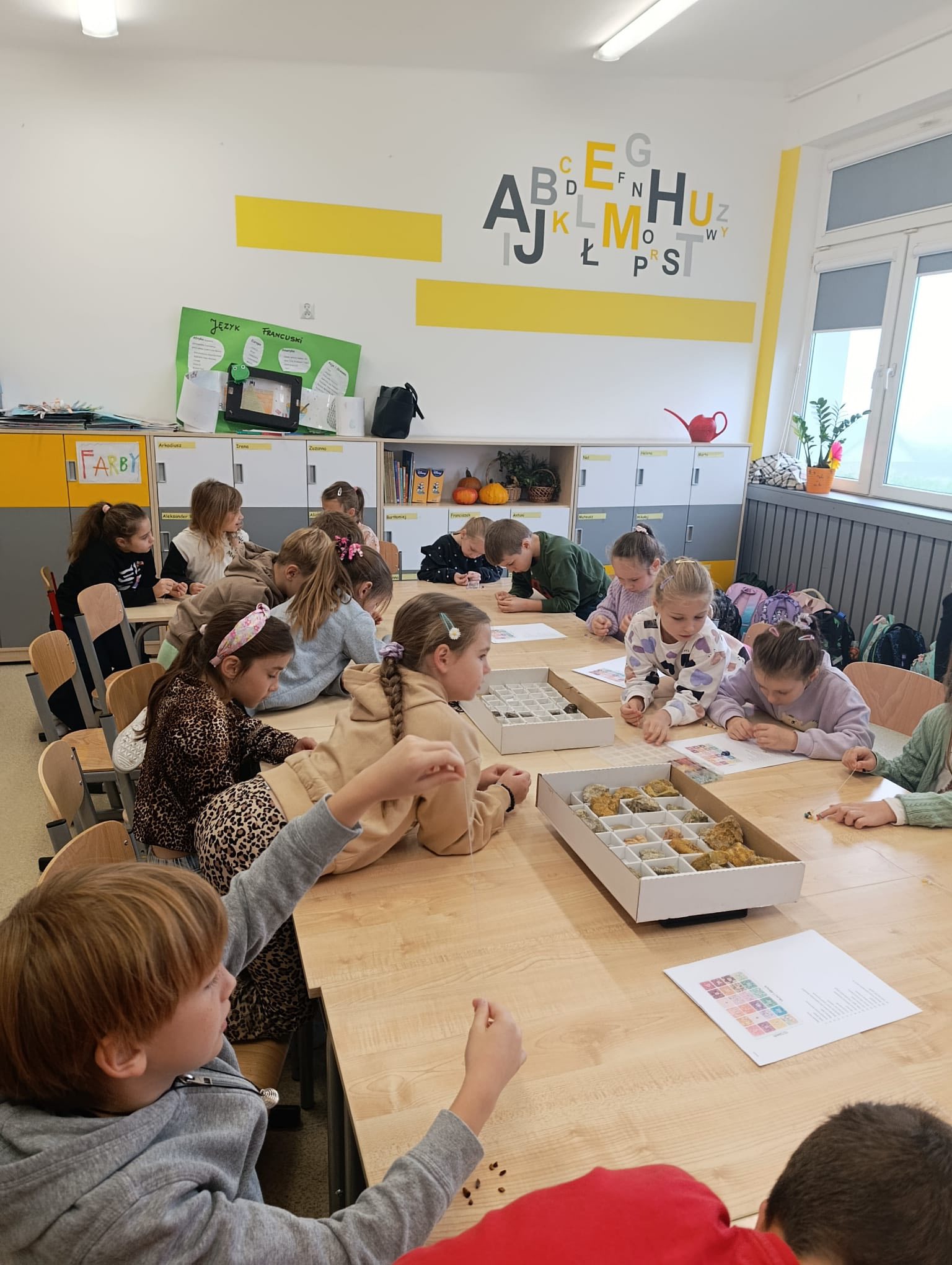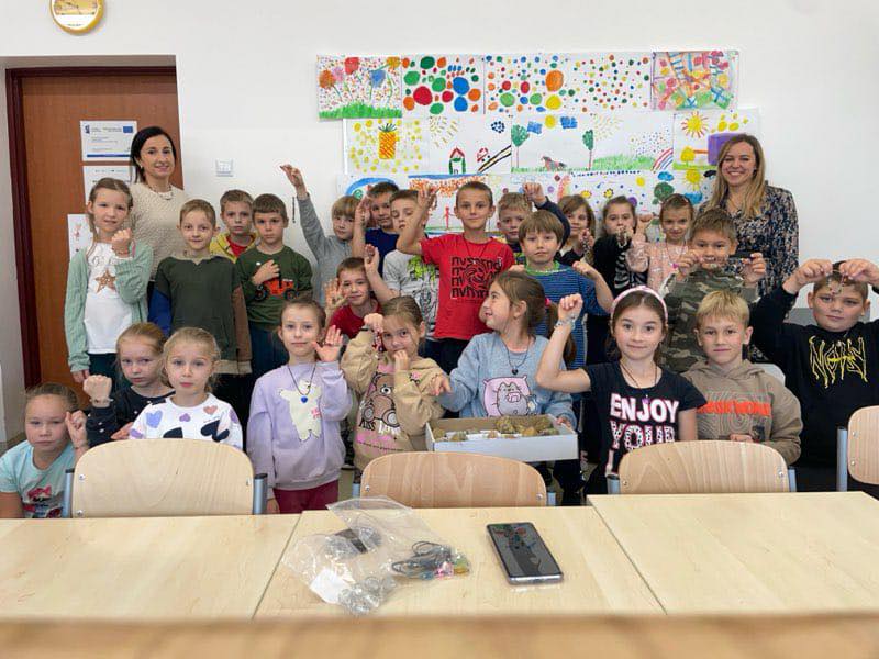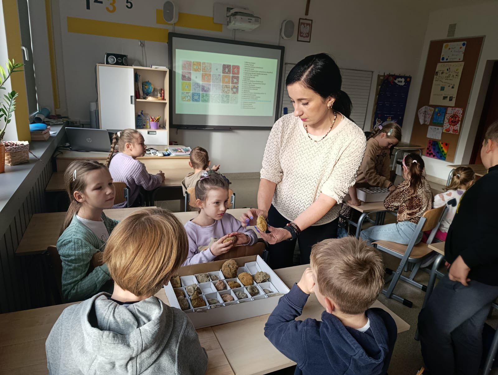 Uczniowie poznali nowe pojęcia, takie jak amonit i minerał, a na zakończenie zajęć wykonali piękne bransoletki .