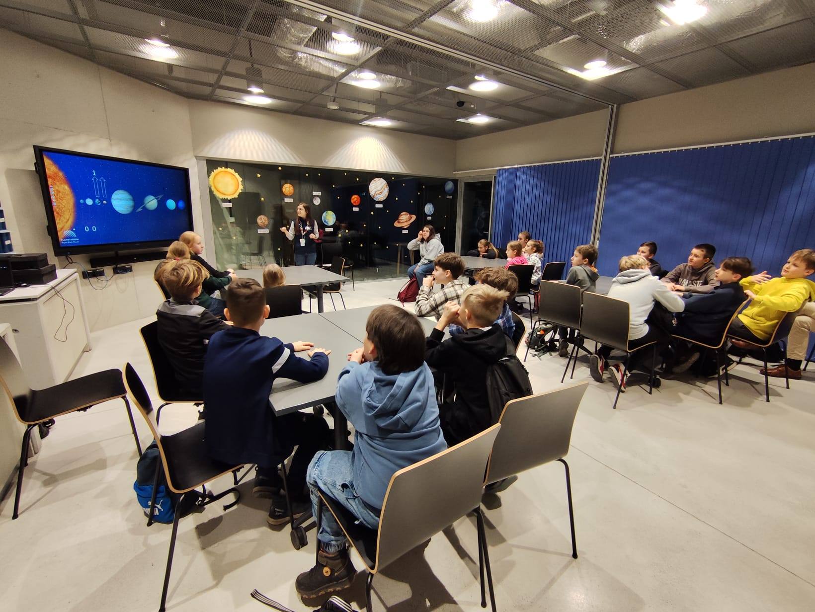 Ogromnym przeżyciem był również seans pod kopułą planetarium poświęcony budowie Układu Słonecznego  oraz znaczeniu i roli gwiazd we Wszechświecie. Uczniowie mogli w niezwykły, multimedialny sposób „przenieść się” w przestrzeń kosmiczną i lepiej zrozumieć tajemnice otaczającego nas świata.